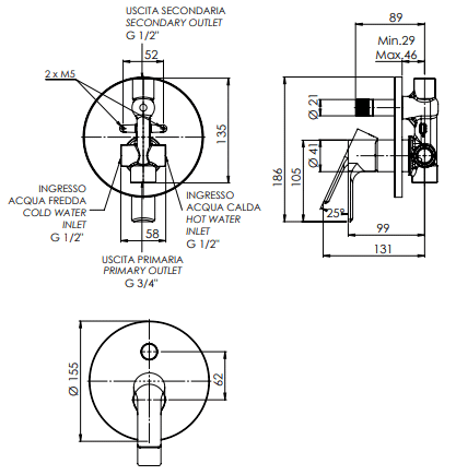Via Venezia 09H – Miscelatore doccia a incasso con deviatore a 2 vie