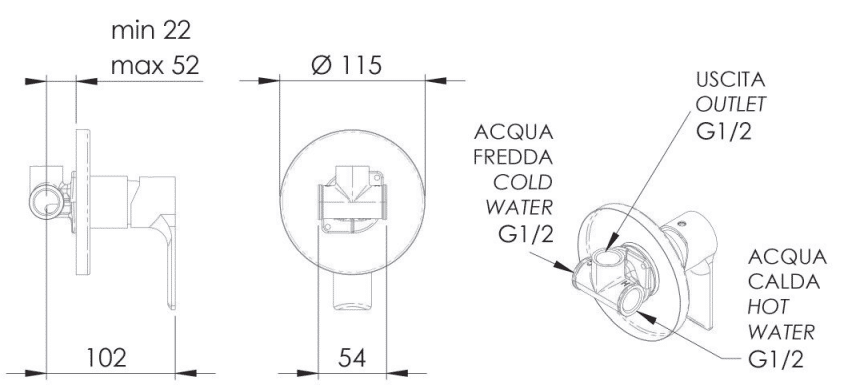 Lerici 30 – Miscelatore doccia da incasso senza deviatore