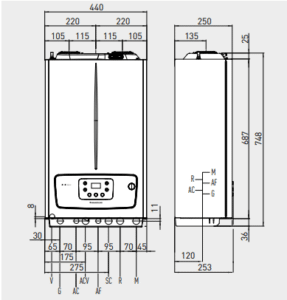 Altezza: 748 mm - Larghezza: 440 mm - Profondità: 253 mm
