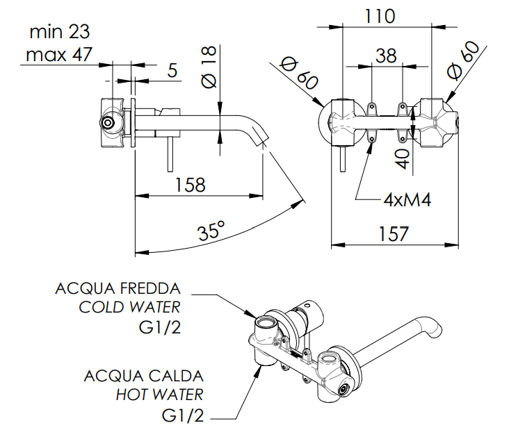 La linea è dotata di cartuccia a dischi ceramici Ø 25 mm.