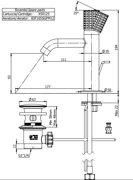 Un design senza tempo impreziosito dagli intarsi di 3 differenti modelli di maniglie. Cartuccia diametro 25mm, 35mm per le figure a incasso doccia.
